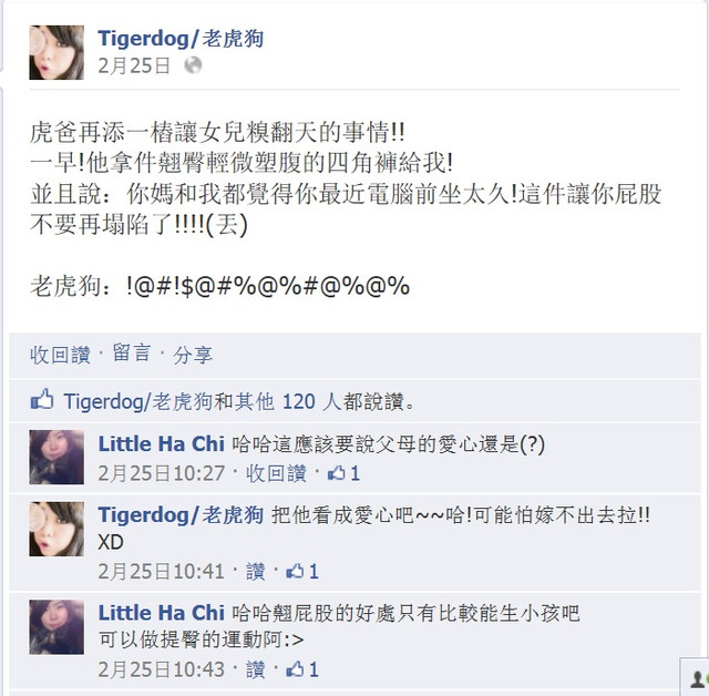 自從上次被虎爸虎媽譏笑後~原本老虎狗的臀部(最左圖)鬆垮到不行!(原因就是電腦前坐太久變形了!)