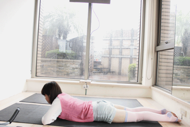 首先腹部趴在地板上,雙臂和雙腿微微打開!!