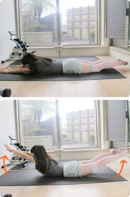 慢慢的將手腳抬高,(這個盡量的抬高即可!!假如有水水做不到的話,就慢慢練習)