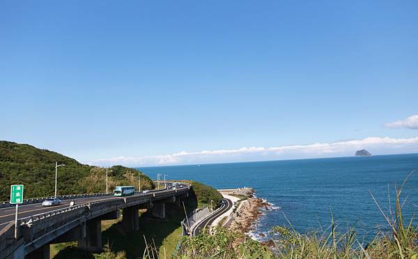 吃完海鮮後,開車逛一下,用手機拍就可以拍到這美景,海天一色藍,看了心情就很好~還隱約可以看到龜山島呢^^