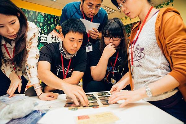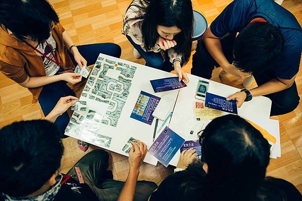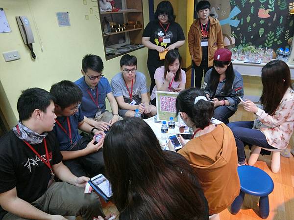 現場會有大大小小的桌椅讓大家分組用,且一旁桌上也有QR CODE,主要就是使用主辦單位給予的平板掃描QR CODE找出線索以來闖關!
