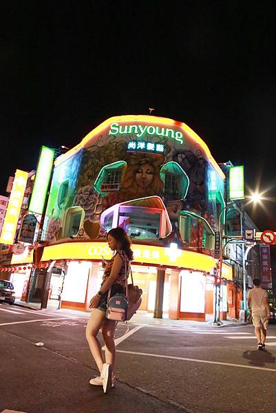 那天變髮後大約晚上11點半,從馬路上往後拍可以看到有著西門町著名的街頭畫!!