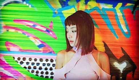 中長髮/漂髮奶茶x紫色/燙捲:知性感的造型